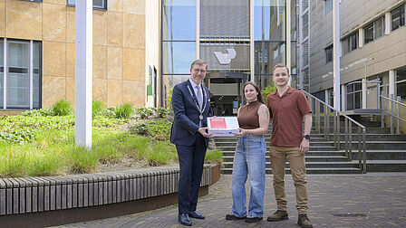 Donderdag 9 april gaf burgemeester Gert-Jan Kats de eerste welkomstdoos aan nieuwe inwoner Maud Jansen: “We zijn nog maar net verhuisd, maar de welkomstdoos geeft ons een welkom gevoel. De inhoud helpt ons om snel onze weg te vinden in Veenendaal.”