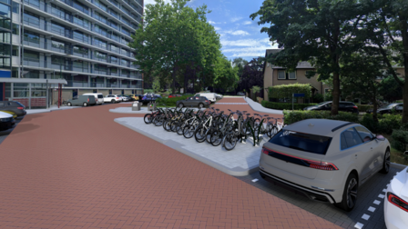 - Op de plek van de fietsenrekken maken we nieuwe parkeerplaatsen.
